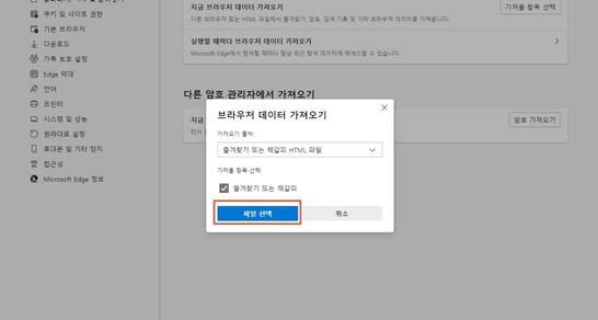 4. 즐겨찾기 또는 책갈피 HTML 파일 선택 후 파일 선택