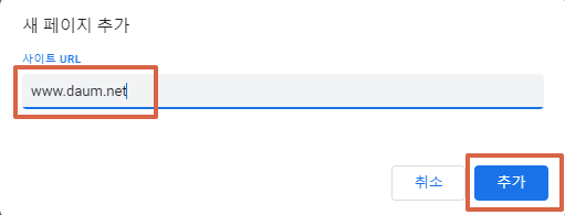 크롬 브라우저 우상단 점세개(전체설정)을 클릭하고 설정으로 진입 - 시작 그룹 -특정 페이지 또는 페이지 모음 열기를 선택후 새 페이지 추가를 클릭하면 팝업이 뜹니다. 이곳에 카카오다음의 주소인 www.daum.net을 을 입력하고 추가를 누르면 크롬에서 다음을 시작페이지로 설정하기 완료입니다.