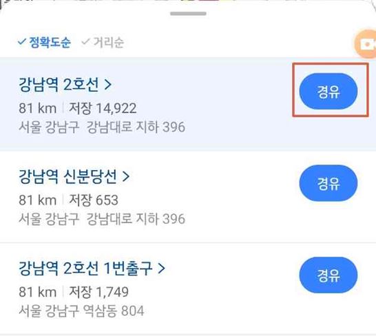5. 경유지를 입력후 아래의 경유 버튼을 눌러줍니다.
