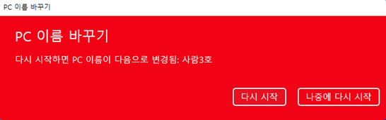 - 이름 입력 - 컴퓨터 다시 시작