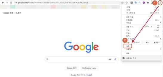 크롬 우상단에 점세개(환경설정)을 클릭하여 메뉴를 열고 메뉴에 설정을 선택합니다.