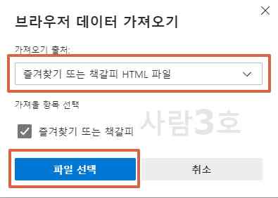 이전에 즐겨찾기 내보내기로 HTML파일을 가지고 있거나 구글 크롬 또는 네이버 웨일에서 북마크 내보내기 받은 파일이 있다면 엣지 즐겨찾기 가져오기 기능을 통해 즐겨찾기를 연동할 수 있습니다.